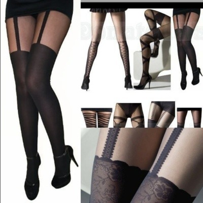 Mock Chain Suspender Print Stockings Tights Lingerie Fashion Hosiery Party Pantyhose