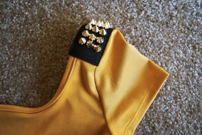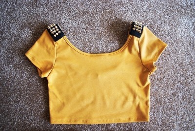 BOAT NECK SHORT SLEEVE CROPPED TOP WITH STUDDED SHOULDERS-