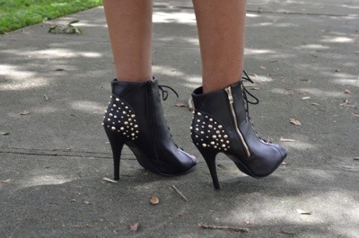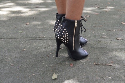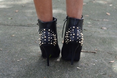 Booties: STUD-BACK LACE-UP HEEL BOOTIE