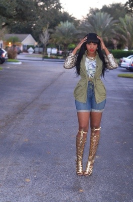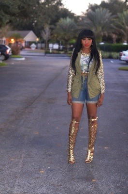 @pinksuedeme : Gold Sequin Sleeve Military Jacket Click Here